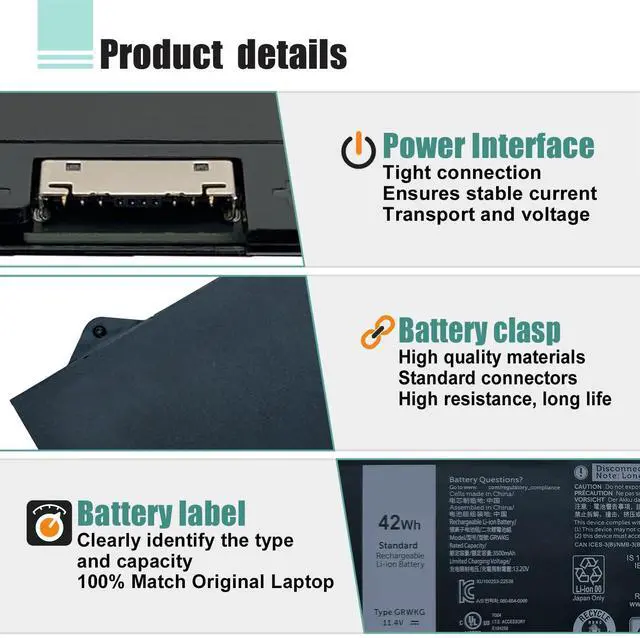 | Compatible Laptop Model | for Dell Latitude 13 5340 Laptop or 2-in-1 Series, | for Precision 3480 3490 3580 3590 Series; | for Dell Latitude 5350 Series (Latitude 5350 supports both 3-cell 42 Wh and 3-cell 54 Wh battery configurations); |