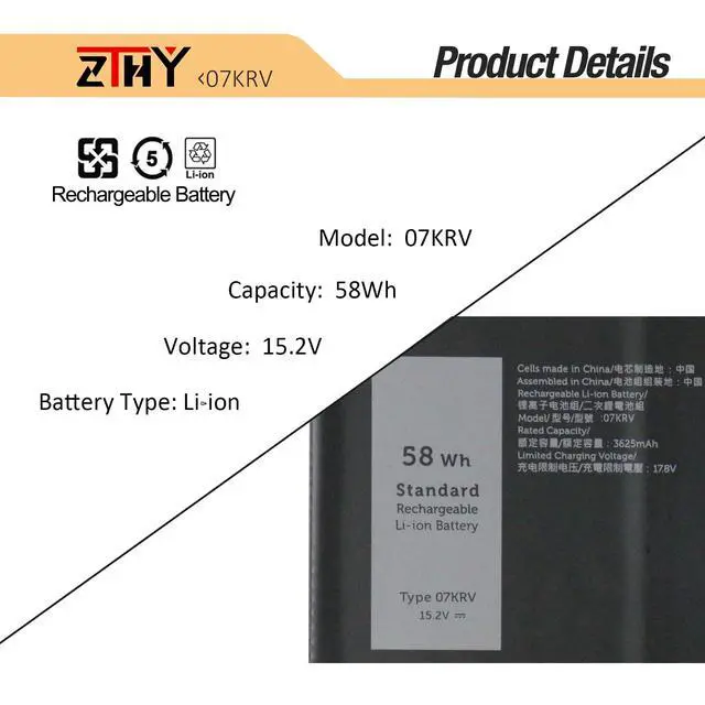 | Attention | There are 2 different models 07KRV 58Wh 4-Cell & M69D0 41Wh 3-Cell for Dell Laptop, they come in different sizes. In order to let you purchase the right battery, we strongly urge you to open the back cover of your laptop and make sure that the battery model you need is 07KRV 58Wh 4-Cell. |