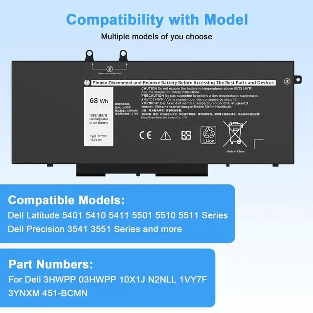 - Compatible P/N: 3HWPP,03HWPP,Latitude,5401,5501,5411,5511,5410,5510,E5401,E5501,E5411,E5511,Precision 3541,3551 Series;Inspiron 17 7500 2-in-1,17 7506 2-in-1,Black Edition Series