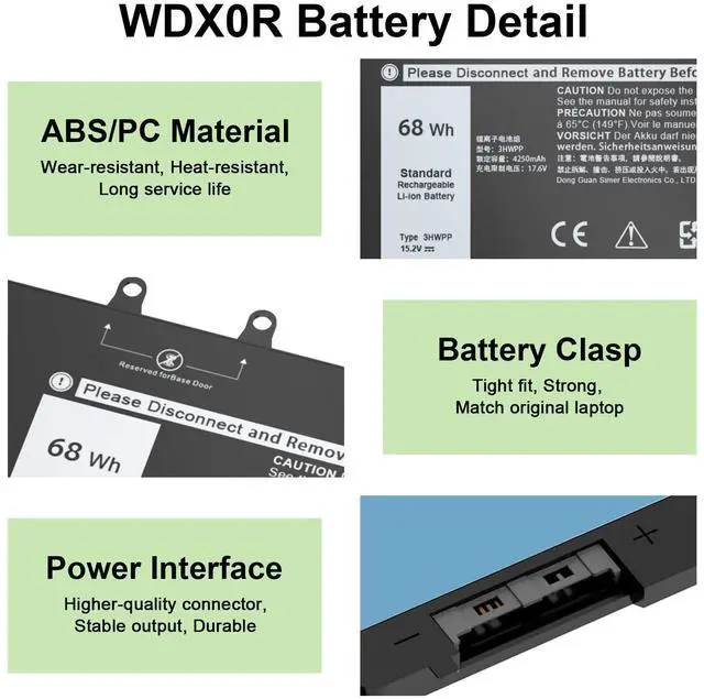 Upgrade your laptop power with the 6GTPY 97Wh replacement battery, engineered for reliable performance and wide compatibility.