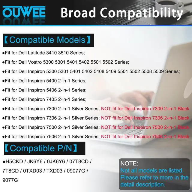 - Fit for Dell Inspiron 5300 5301 5401 5402 5408 5409 5501 5502 5508 5509 Series;