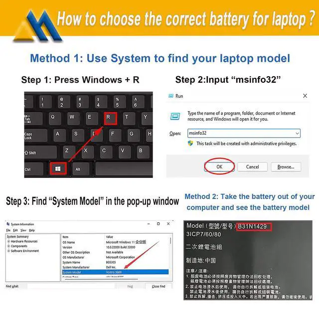 Method 1:You have to find your specific laptop model before ordering a correct battery.