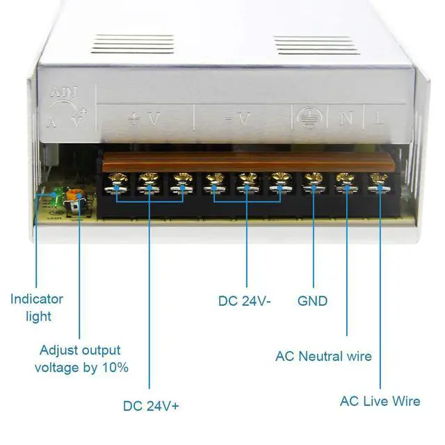| Symbol mark | L: AC Live Wire ; N: AC Neutral wire ; +V:DC 24V+ ; -V: DC 24V- ; +VADJ: Adjust output voltage by 10% |