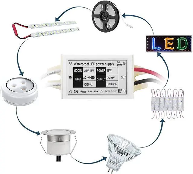 Our 15W LED power supply driver is suitable for most of devices with DC24V such as CCTV, Illuminated Module Signboard, Cabinet Lights, LED Strip Lights, LED Display, LED Module, Outdoor 24V DC LED Lights, Indoor/Outdoor Deck Lights, Stair Step Lights, LED Light Bulbs like G4, MR11, MR16 LED bulbs.