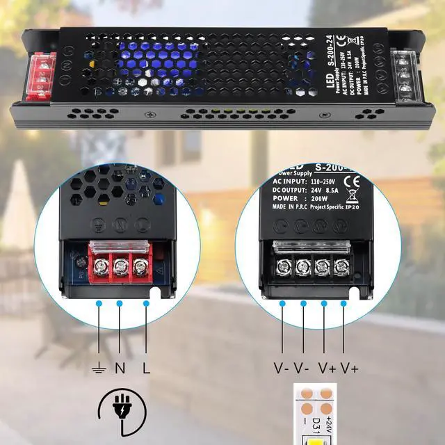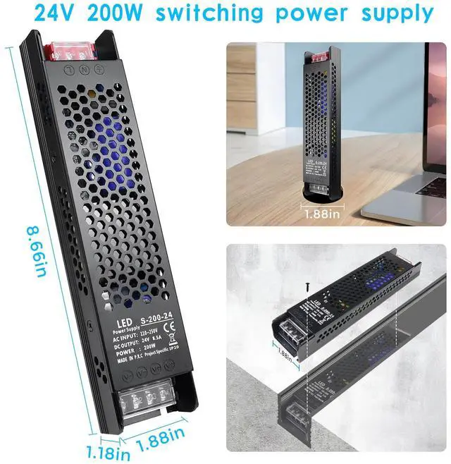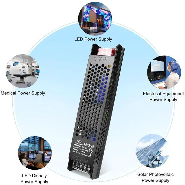 24V power supply DC low voltage adapter is widely used in a variety of 24V LED light strips (< 200W).
