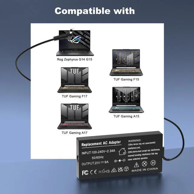 180W Charger Compatible with asus Laptop Charger Rog G14 GA401 G15 GA502, ADP-180TB H 20V 9A AC Adapter, TUF Gaming Series F15 F17 FX505D FX505G