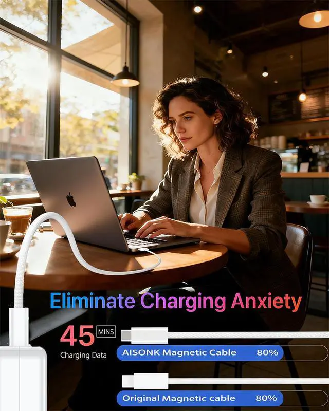 Effortless Magnetic Snap: USB-C to Magnetic 3 cable features a powerful magnet that instantly aligns and locks onto your MacBook Air or MacBook Pros port. The fast and secure connection prevents accidental tugs, so you can keep charging whether you're working, streaming, or on the go.