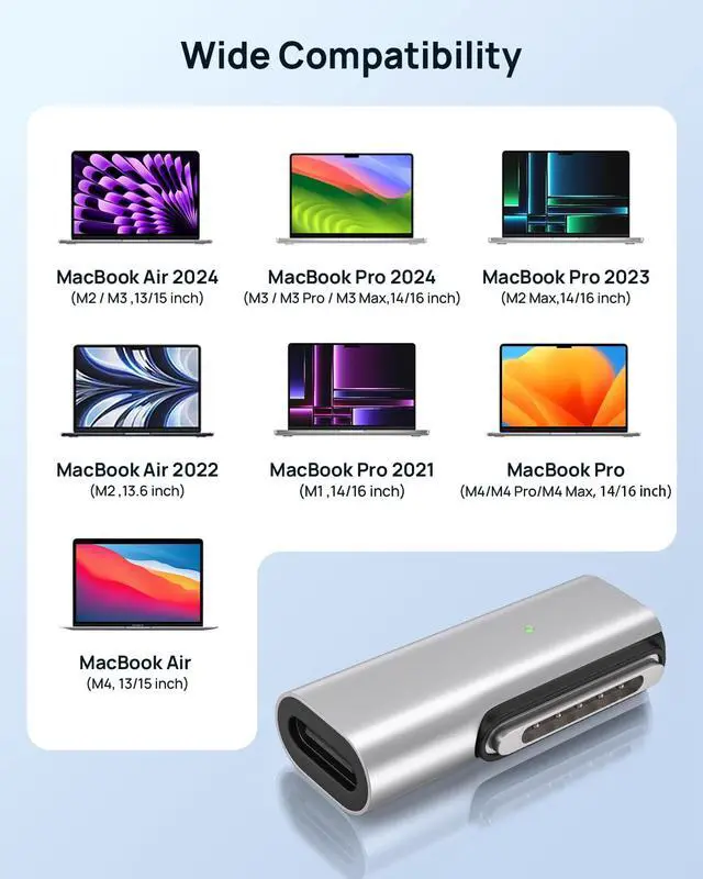Compact and Convenient This Magnetic adapter Its compact and lightweight design is easy to carry and use anytime and anywhere; The magnetic suction interface has strong suction power and is not easy to fall.