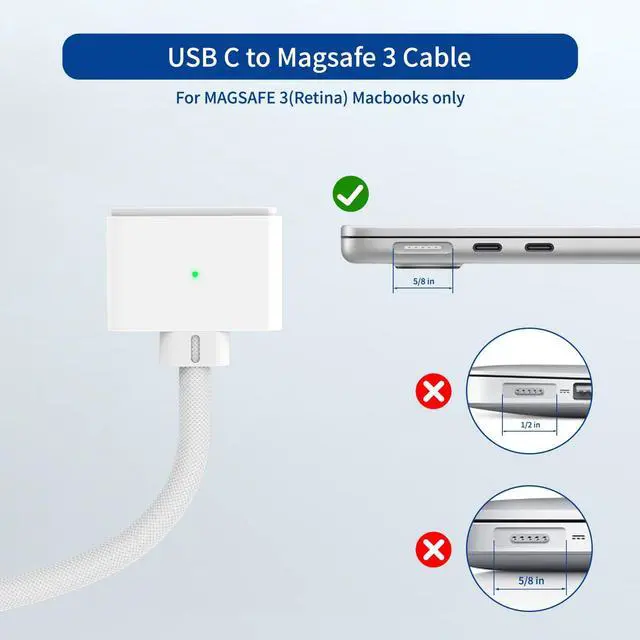 SAFETY AND FUTURE-READY DESIGN: Prioritizing safety, this charging cable compatible with Apple MacBook charger includes built-in protection against overvoltage, overcurrent, and short circuits. The silicone sheath at the terminal enhances durability, ensuring the cable stands up to daily use. Ideal for both professionals and tech enthusiasts, this USB-C to MagSafe 3 cable combines functionality, style, and safety for a superior charging solution.