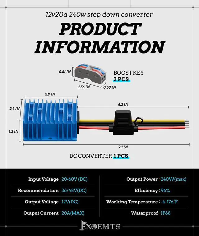 EXOEMTS 12V DC converter with synchronous rectification technology