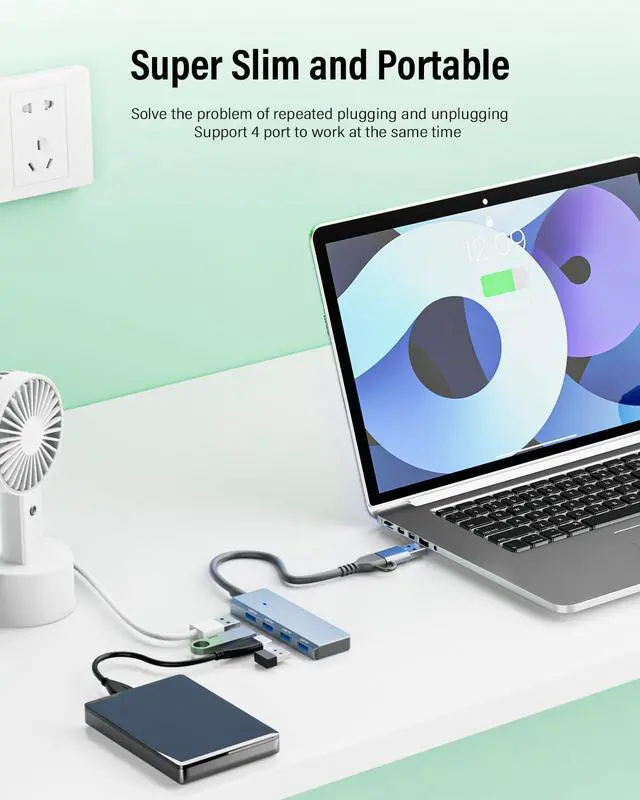 Widely used in mouse, keyboard, U disk, card reader, hard disk, printer, desktop fan and other devices with USB interface. Perfectly resolve the issue of insufficient USB ports on your laptop.