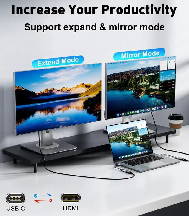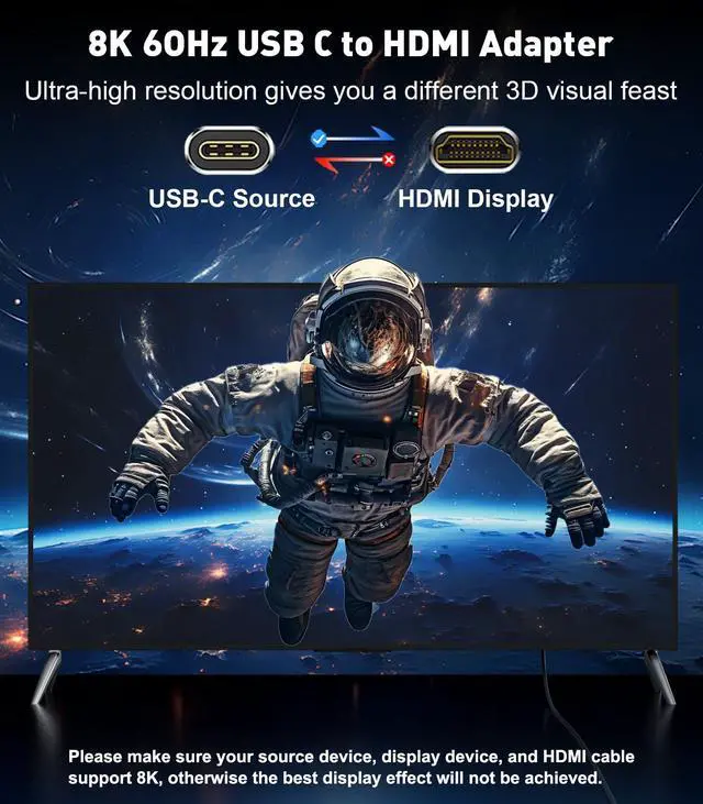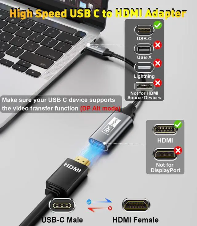Vivid 3D Effect Video Synchronization: The USB C to HDMI 2.1 adapter features the latest HDMI 2.1 standard that supports resolutions up to 8K 60Hz and is backward compatible with 4K 120Hz/60Hz, 2K 240Hz to avoid visual fatigue due to low refresh rates. Expandable/mirrorable to a larger screen for a crystal clear visual experience. Supports Dynamic HDR, DSC, HDCP 2.3, 3D, 8K UHD, Dolby Atmos, and more (Note: Mac OS system itself limits support to 4K 60Hz only)