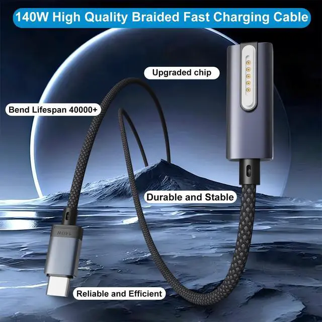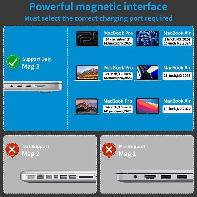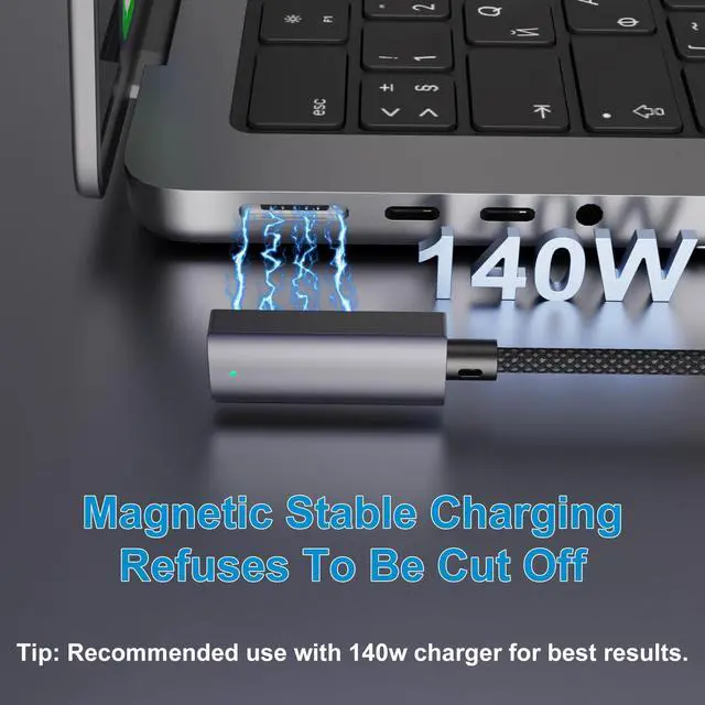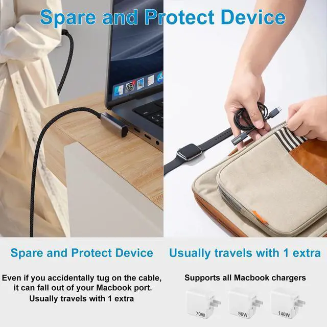 YBSGO 140W USB C to Magnetic 3 Cable, 90° design makes it more convenient to charge your Macbook quickly.