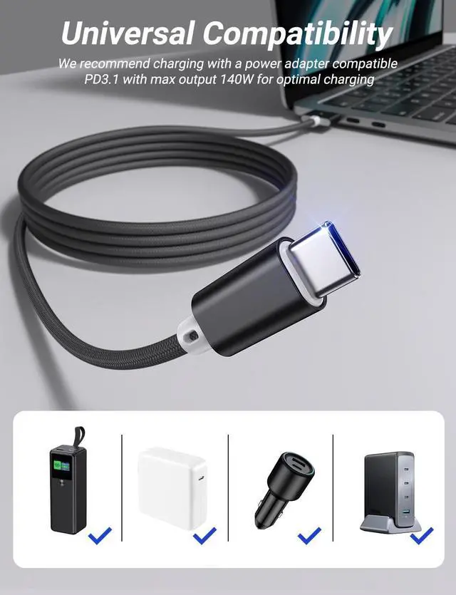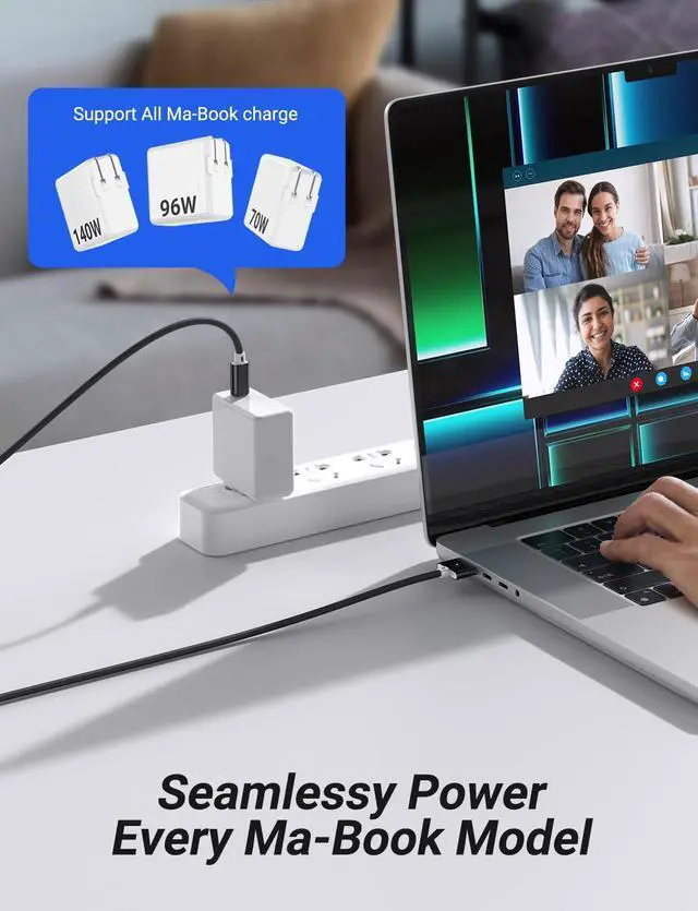 This charging cable supports fast charging up to 140W, allowing you to charge your MacBook to 50% in just 30 minutes! It is designed for 140W or 96W USB-C adapters, making it ideal for professionals who need rapid charging.