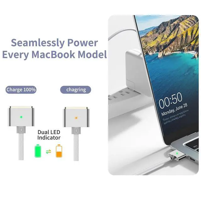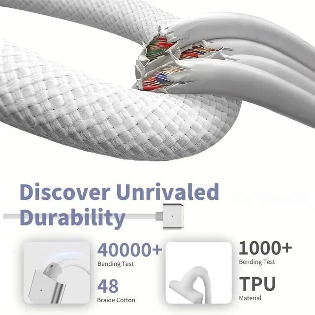STRONG MAGNETIC SUCTION: The for MacBook charger cord features strong magnetic suction to ensure a secure and stable connection while charging. This innovative design helps protect your MacBook by preventing the charger from becoming disconnected or falling out, providing peace of mind during use. The magnetic USB-C cable ensures your device stays powered without interruption.