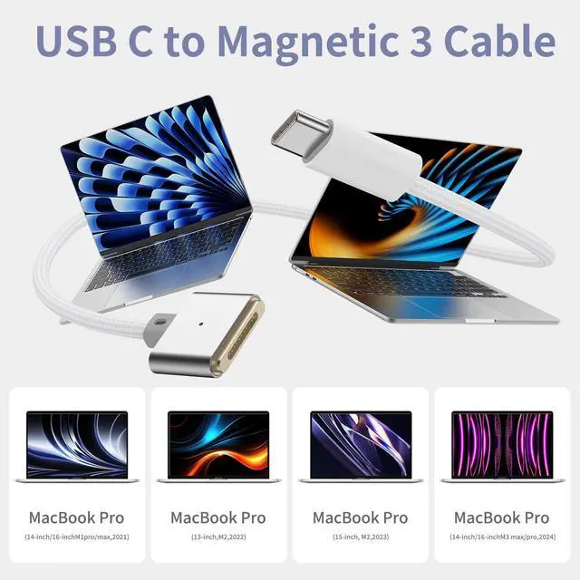 140W USB-C to Magnetic 3 Cable Safe 6.6FT for M4/M3/M2 MacBook Air & Pro, Compatible with MacBook Air (13"/15" 2025-2022) and MacBook Pro (16"/14" 2024-2021) - White