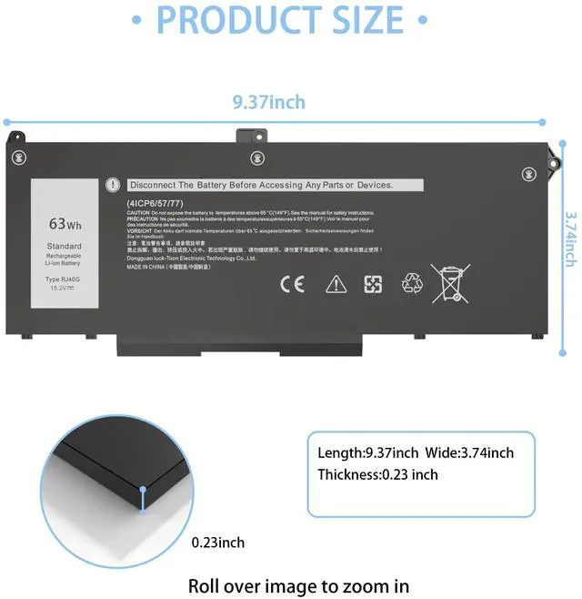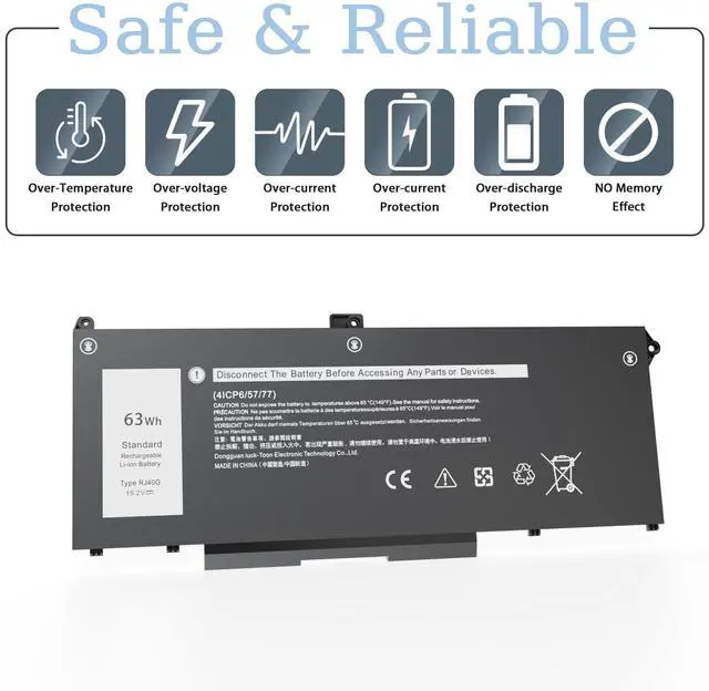 63Wh RJ40G Battery Replacement For Dell Latitude 14 5420 series; Replacement For Dell Latitude 15 5520 series; Replacement For Dell Precision 15 3560 series; Replacement For P137G P137G001 series; Replacement For Dell P104F P104F001 P104F002 series