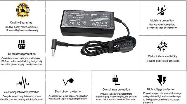 Laptop Charger For Hp Smart Blue Tip Pavilion X360 X2 11 13 15 Elitebook 830 840 850 G3 G4 G5 G6 Probook 450 G5 640 650 G2 Spectre L25296-002 710412-001 741727-001 740015-003 854054 Power Supply Cord