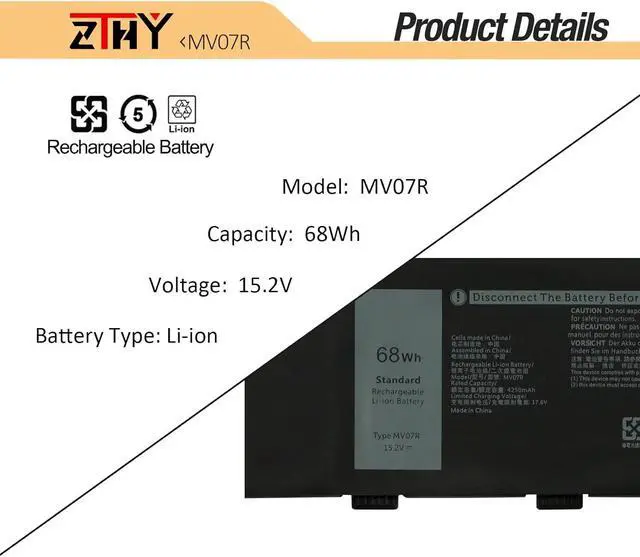 Note: There are 2 different models MV07R 68Wh 4-Cell & 266J9 51Wh 3-Cell for Dell G3 15 3500 3590 G5 5500 5505, please confirm with your original battery before purchase!!!