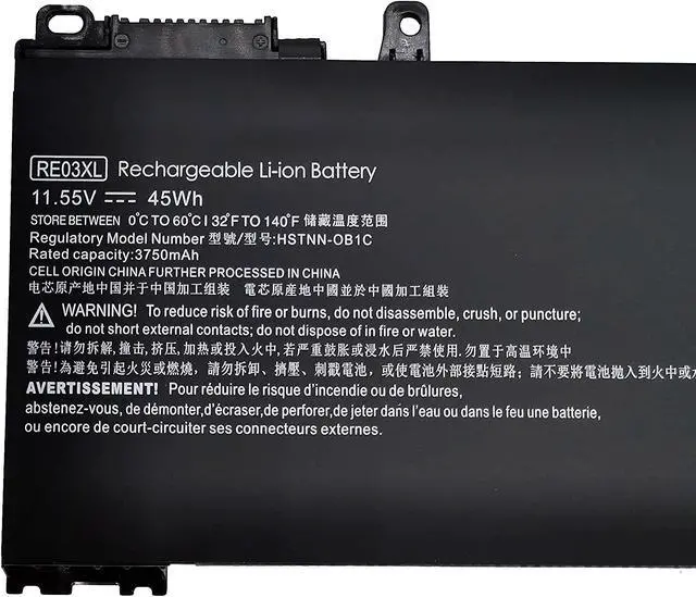 Specification: Battery Type: Rechargeable Li-ion Battery Model: RE03XL Voltage: 11.55V Capatity: 45Wh3750mAh Condition:Brand new Color :Black Replacement for Part Number: RE03XL, RE03045XL, RE03045XL-PL HSTNN-0B1C, HSTNN-DB9A, HSTNN-OB1C HSTNN-UB7R, L32407-2B1, L32407-2B2 L32407-2C1, L32407-2C2, L32407-541 L32407-AC1, L32407-AC2, L32656-002 L32656-005, 3ICP65974 Compatible Models: HP ProBook 430 G6 Series ,HP ProBook 440 G6 Series HP ProBook 445 G6 Series ,HP ProBook 445R G6 Series HP ProBook 450 G6 Series ,HP ProBook 455R G6 Series HP ProBook 455 G6 Series ,HP ProBook 430 G7 Series HP ProBook 440 G7 Series ,HP ProBook 445 G7 Series HP ProBook 450 G7 Series ,HP ZHAN 66 Pro 13 G2 Series HP ZHAN 66 Pro 14 G2 Series ,HP ZHAN 66 Pro 15 G2 Series HP ZHAN 66 Pro 14 G3 Series ,HP ZHAN 66 Pro A 14 G3 Series You can use inch Ctrl+Finch to find your own model or part number. Buy With Confidence 24 x 7 Email Support 12-Month Ship next business day Please feel free to contact us if you have further questions.We will be more than happy to assist you.