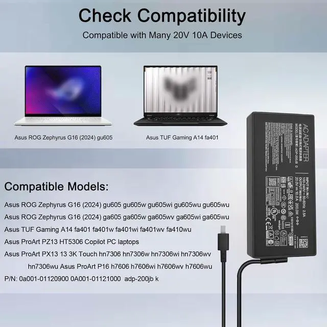 200w 20V 10A laptop charger for Asus ProArt PZ13 HT5306 Copilot PC laptops