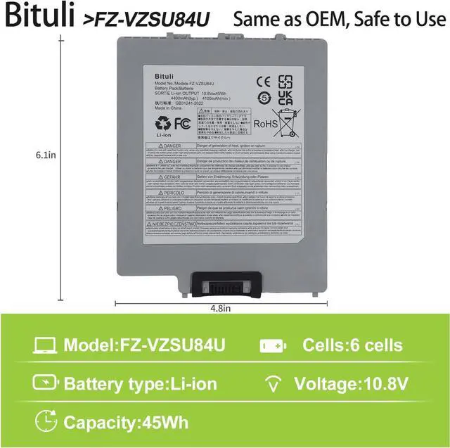 Replacement for Part Number:FZ-VZSU84A2K FZ-VZSU84A2R FZ-VZSU84A2U FZ-VZSU84AK FZ-VZSU84AR FZ-VZSU84AU FZ-VZSU84K FZ-VZSU84R FZ-VZSU84U FZ-VZSU89U FZ-VZSU96U.Compatible ModelsPanasonic Toughpad FZ-G1 SeriesCompatible ModelsPanasonic Toughpad FZ-G1A FZ-G1B FZ-G1C FZ-G1F FZ-G1J FZ-G1K FZ-G1L FZ-G1M FZ-G1N Series.Compatible ModelsPanasonic FZ-G1 FZ-G1 AABDXER Toughpad FZ-G1 Series Notebook Bituli-worthy of trust. How To MaximizeThe Battery Life? Why The Laptop Does Not Recognize The New Battery Laptop Maintenance Tips: Bituli Battery for HP Bituli Battery for MacBook Bituli Battery for Panasonic Bituli 4-cell Battery Bituli Battery for DELL FZ-VZSU84U FZ-VZSU84AU Laptop Battery Replacement for Panasonic Toughpad FZ-G1 Series FZ-G1AABDXER FZ-VZSU84A2K FZ-VZSU84A2R FZ-VZSU84A2U FZ-VZSU84AK Bituli battery packs are comprised of grade "A" cells with top quality ion battery materials that ensure Reliable performance extended battery life. Item:Bituli FZ-VZSU84AU Replacement Battery for Panasonic FZ-G1 Series Notebook (Use"Ctrl"+"F" to find your laptop model)