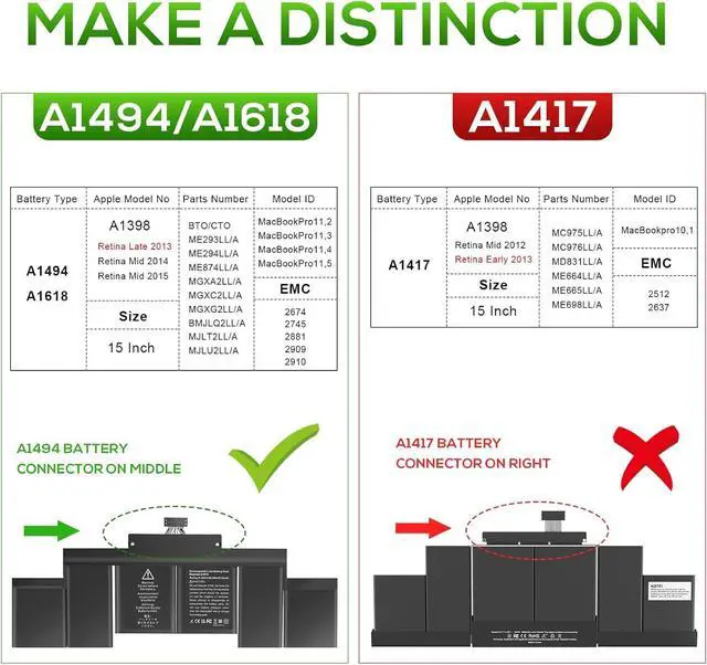 Next pageCollapse all4.2 out of 5 starsTREE.NB A1618 A1494 Battery Replacement for MacBook Pro 15 Inch Retina A1398 (Late 2013, Mid 2014, Mid 2015 Version), NOT fit for A1398 (Mid 2012 Early 2013), P/N:020-00079 02000079