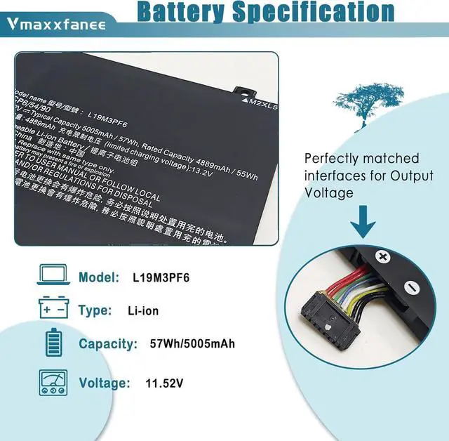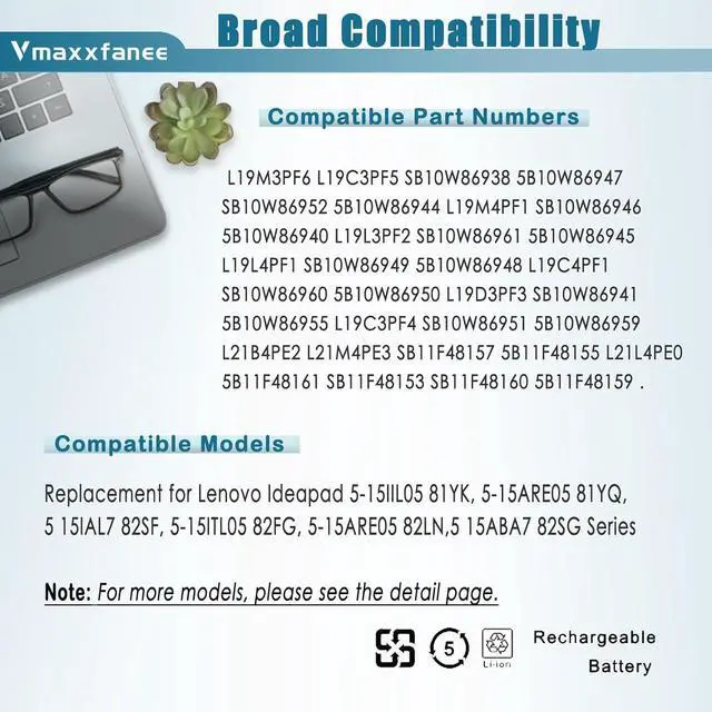 L19M3PF6 57Wh Laptop Battery Replacement for Lenovo Ideapad 5-15ARE05 5-15IIL05 5-15ITL05 5-15ARE05 5 15IAL7 5 15ABA7 Series L19L3PF2 L19C3PF5 L19M4PF1 L19D3PF3 L19C3PF4 L19L4PF1 L19C4PF1 11.52V