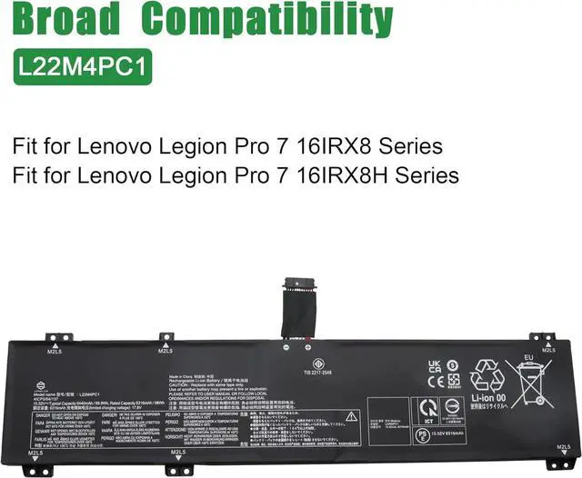 L22M4PC1 Laptop Battery Replacement for Lenovo Legion Pro 7 16IRX8 16IRX8H Series Notebook SB11K38958 5B11K38950 L22D4PC1 SB11K38962 5B11K38957 Black 15.52V 99.9Wh 6440mAh