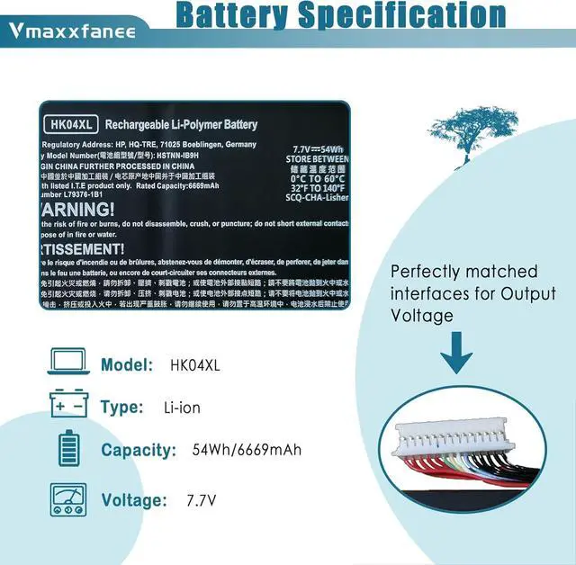 Note:The HK04XL battery has two types of Capacity(54Wh and 78Wh) , the battery in this listing will be the 54Wh.