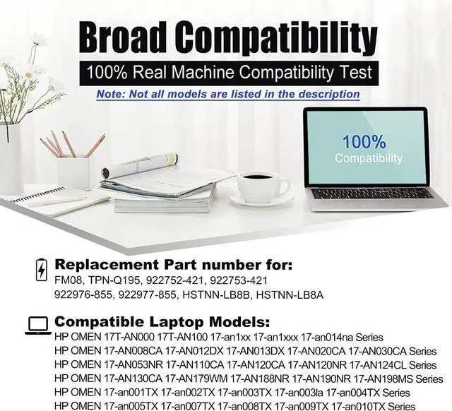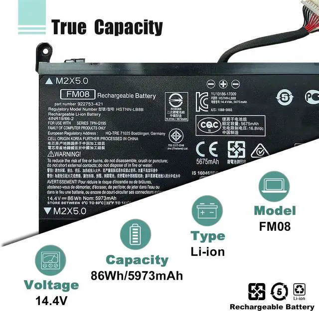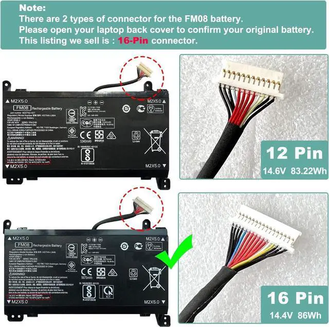 Help others learn more about this product by uploading a video!4.0 out of 5 starsBOWEIRUI FM08 922976-855 922752-421 Laptop Battery Replacement for HP Omen 17-AN013TX 17-AN014TX 17-AN014NG HQ-TRE Series 922753-421 922977-855 HSTNN-LB8B (14.4V 86Wh 5973mAh) 16-Pin Connector