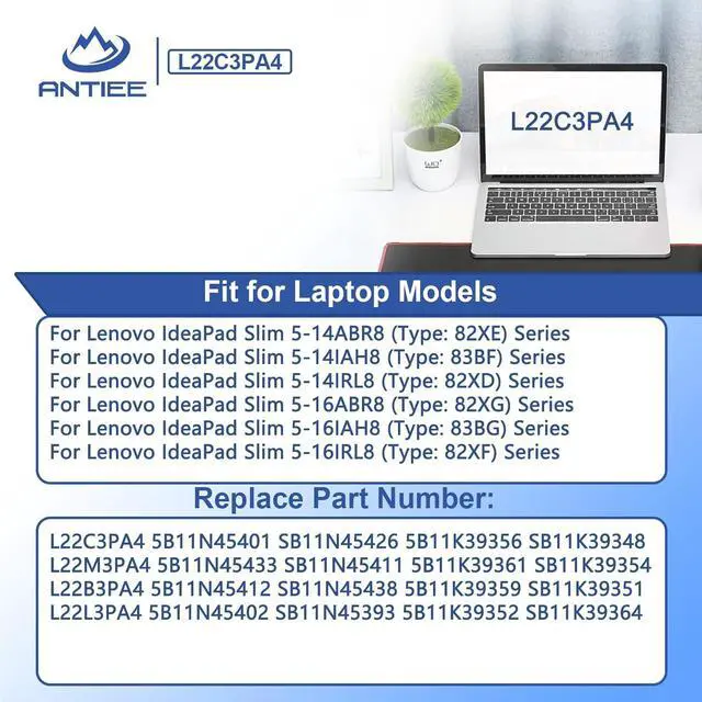 ANTIEE L22M3PA4 L22C3PA4 Laptop Battery Replacement for Lenovo IdeaPad Slim 5-14IRL8 5-14ABR8 5-14IAH8 5-16IRL8 5-16ABR8 5-16IAH8 Series L22L3PA4 L22B3PA4 SB11K39354 SB11N45411 SB11K39351 56.6Wh