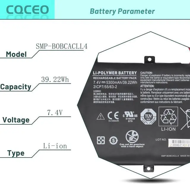 Help others learn more about this product by uploading a video!CQCEO SMP-BOBCACLL4 Laptop Battery for Xplore XSlate B10 IX101B2 D10 IX101B1 Series 21-93042-01 2ICP7/55/63-2 7.4V/39.22Wh/5300mAh/4-Cell