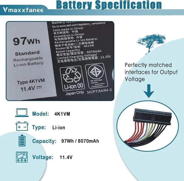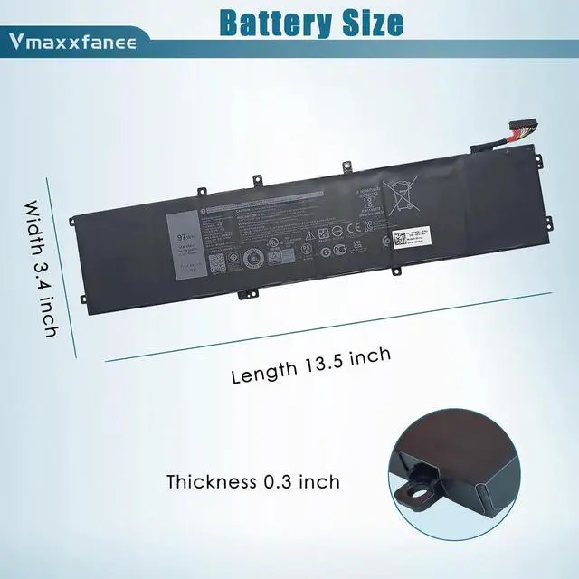 Vmaxxfanee 4K1VM Laptop Battery Replacement for Dell G7 17 7700 Series Notebook W62W6 0W62W6 9TM7D 09TM7D NCC3D 0NCC3D NYD3W 0NYD3W XYCW0 0XYCW0 V0GMT 11.4V 8070mAh 97Wh 6-Cell