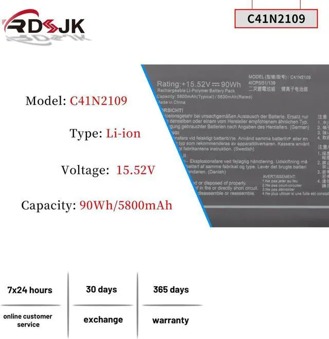 Battery Type: Li-ion; Voltage: 15.52V; Capacity: 90Wh/5800mAh; Color: Black