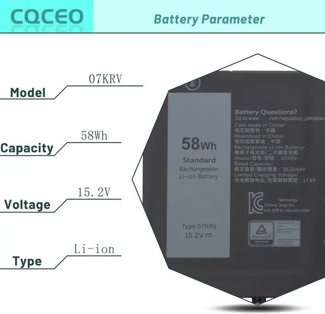 Help others learn more about this product by uploading a video!07KRV Laptop Battery for Dell Latitude 5430 5530 5330 Precision 3570 P104F P104F005 P104F006 P137G P137G004 P137G005 P137G006 Series M69D0 H4PVC Y86WG 8WRCR 078FWY 4FVJG 15.2V/58Wh/3625mAh/4-Cell