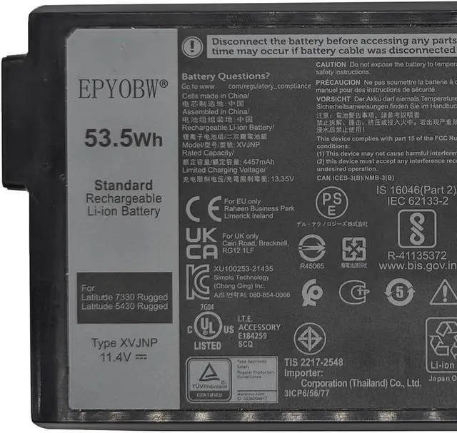 Help others learn more about this product by uploading a video!1.7 out of 5 starsEPYOBW XVJNP Laptop Battery 53.5Wh Compatible with Dell Latitude 5430 Rugged Extreme/Latitude 7330 Rugged Extreme / P148G P148G001 P149G P149G001 Series 6JRCP 06JRCP M0TN3 0M0TN3 KD1CT 451-BCWQ