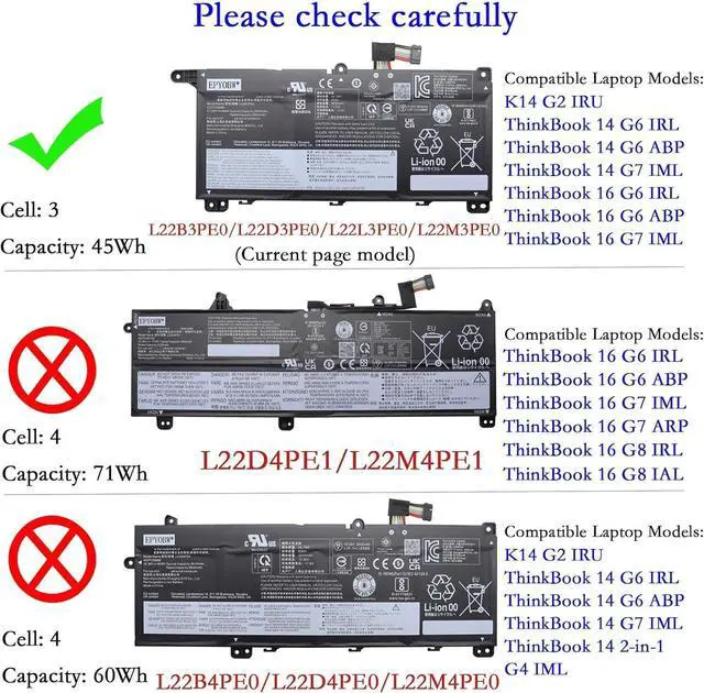Specifications Battery Model: L22B3PE0 / Voltage: 11.52V / Capacity: 45Wh 3910mAh 3-Cell / Color: Black / Condition: Brand New.