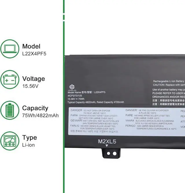 JIAZIJIA L22X4PF5 Laptop Battery Replacement for Lenovo IdeaPad Pro 5 16APH8 16ARP8 16IRH8 Slim Pro 9 16IRP8 Yoga Pro 9 16IRP8 Series SB11K24769 5B11K24772 L22M4PF5 L22D4PF5 L22B4PF5 15.56V 75Wh
