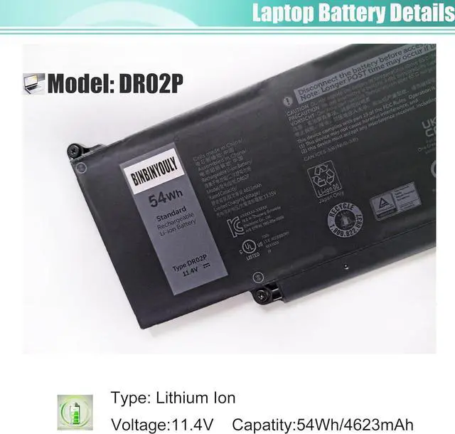 Help others learn more about this product by uploading a video!BINBINYOULY DR02P Battery Replacement for Dell Latitude 5440 5540 / Precision 3480 3580 Series 803W6 0803W6 2X1V9 02X1V9 11.4V 54Wh 4623mAh 3-Cells