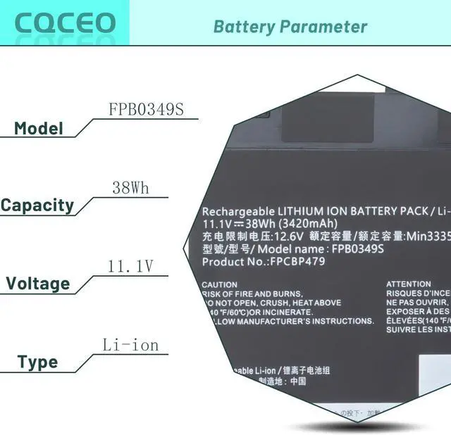 Help others learn more about this product by uploading a video!CQCEO FPB0349S FPCBP479 Battery for Fujitsu Stylistic Q665 Q739 Q738 Q616 Series FPB0326S CP690859 CP690859-01 CP700540-01 31CP6/56/77 11.1V/38Wh/3420mAh/3-cell
