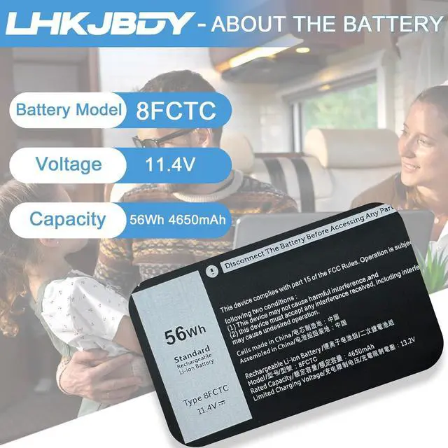 Specifications: Type: 8FCTC; Voltage: 11.4V; Capacity: 4650mAh/56Wh; Color: Black. Battery type: Lithium-Ion; The Packages includes: 1pcs 8FCTC Laptop Battery Replacement, 4pcs Screwdrivers, 1 pcs Instruction for 8FCTC Battery. The batteries are certified by UL and CE, ensuring safety and high performance