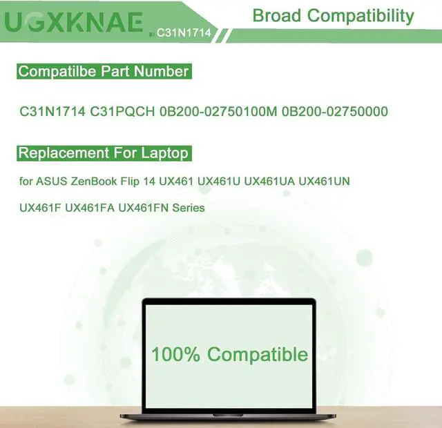 Compatible Laptop Models: Replacement for ASUS ZenBook Flip 14 UX461 UX461U UX461UA UX461UN UX461F UX461FA UX461FN Series