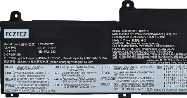 • SpecificationsBattery Model:L21M3PG2 // Voltage:11.52V // Capacity:57Wh 4948mAh 3-cell // Color:Black // Condition:Brand New.