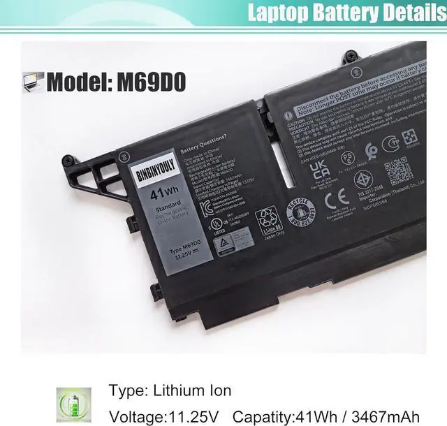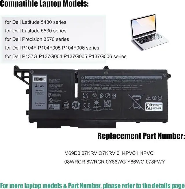 Help others learn more about this product by uploading a video!M69D0 Battery Replacement for Dell Latitude 5430 5530 Precision 3570 P104F P104F005 P137G P137G004 Series Laptop 07KRV O7KRV 0H4PVC H4PVC 08WRCR 8WRCR 0Y86WG Y86WG 078FWY 11.25V 41Wh 3467mAh