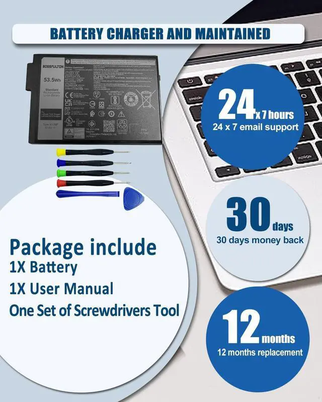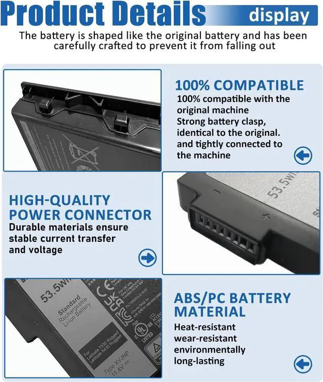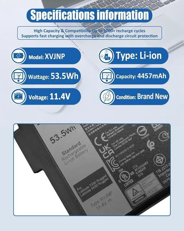 bossfulton 53.5Wh XVJNP Battery Replacement for Dell Latitude 5430 Rugged Latitude 7330 Rugged Series Notebook P148G P148G001 P149G P149G001 6JRCP 06JRCP M0TN3 0M0TN3 KD1CT 451-BCWQ