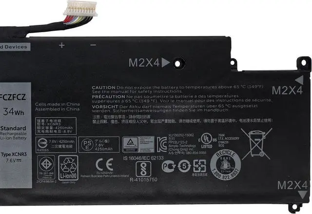 • SpecificationsBattery Model:XCNR3 // Voltage:7.6V // Capacity:34Wh 4250mAh 4-cel // Color:Black // Condition:Brand New.