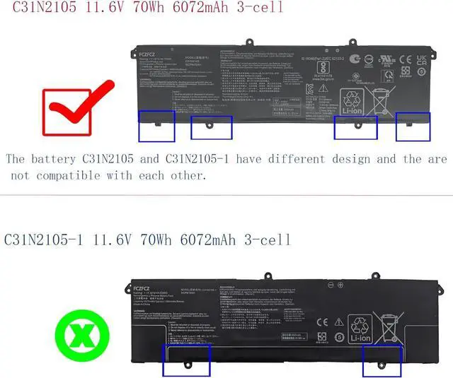 Note: The battery C31N2105 and C31N2105-1 have different design and the are not compatible with each other. To save your time and money, please open the back cover of your laptop and confirm that your battery is the same as described in the picture before ordering.