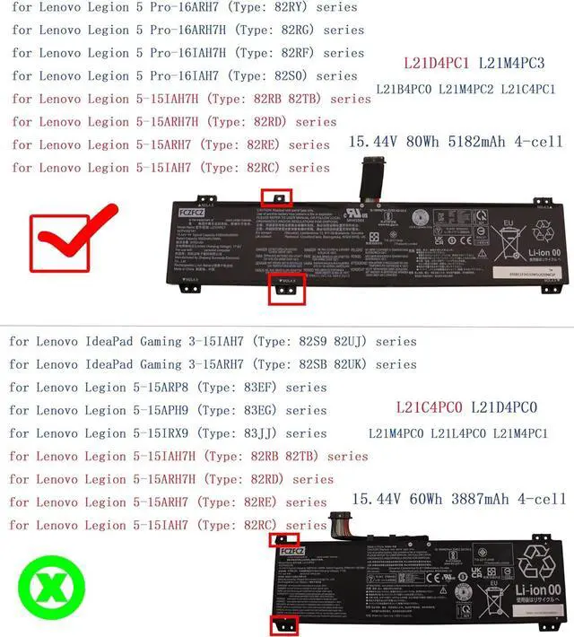 Note:The above laptop models have 2 types of batteries with different capacity (80Wh and 60Wh) Please open the back cover of your laptop to make sure the type of battery you want to purchase is the same as the picture description before purchasing.