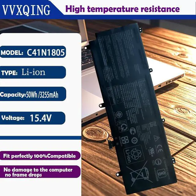 Help others learn more about this product by uploading a video!VVXQING C41N1805 Replacement Battery Compatible for Asus ROG Zephyrus S GX531 GX531GS GX531GX GX531GM 15.4V 50Wh 3255mAh HSTNN-PB6K 801554-001